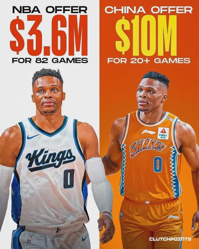 其實無論CBA或其他聯(lián)賽開價多少,對于生涯至今總薪資收入高達(dá)3.46億美元的威少來說都是九牛一毛,且人家當(dāng)前最主要目標(biāo)還是重返NBA甚至壓根沒有前往海外打球的想法。